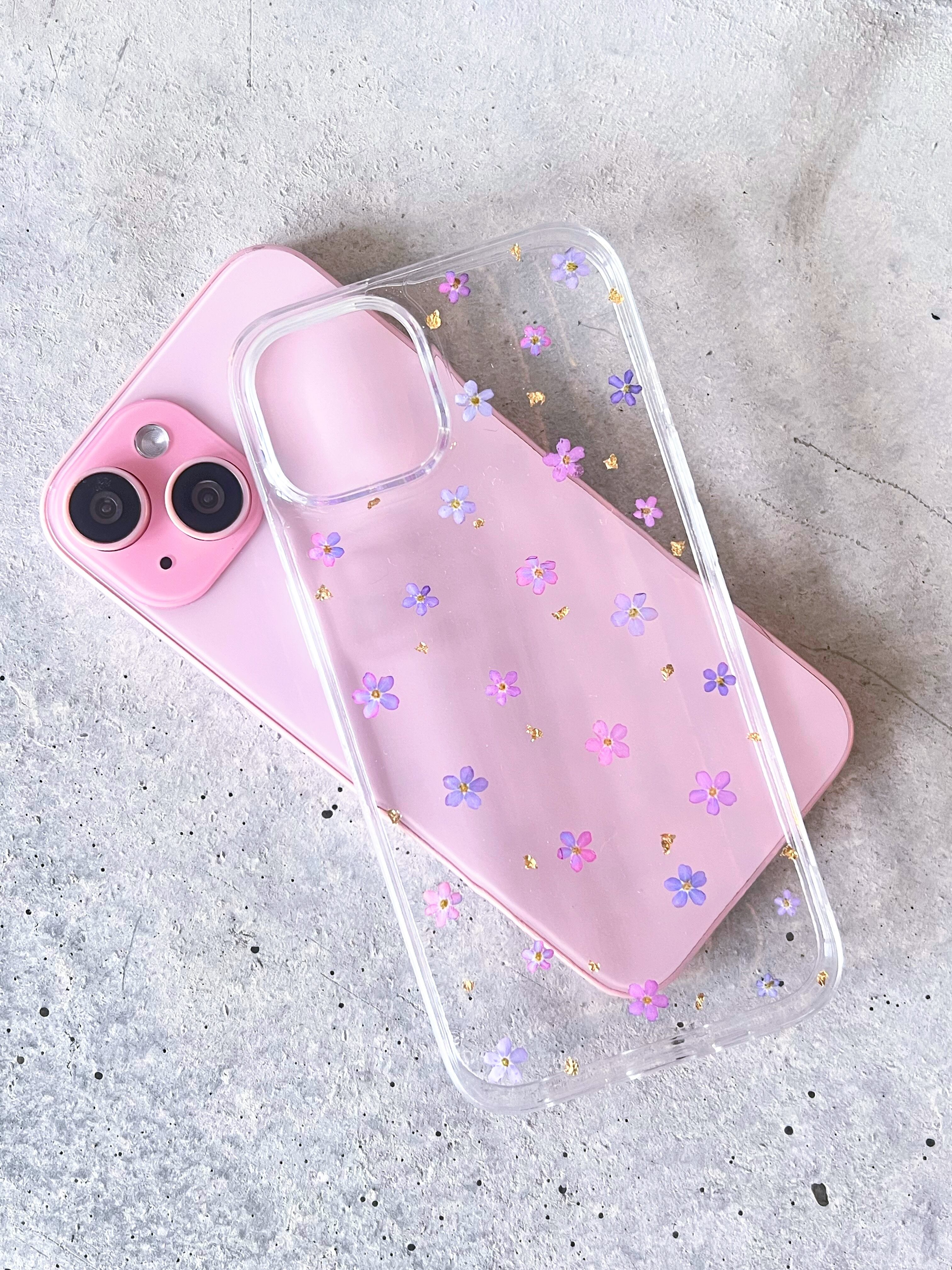 【数量限定】わすれな草の押し花スマホケース(ピンクと紫パターン)